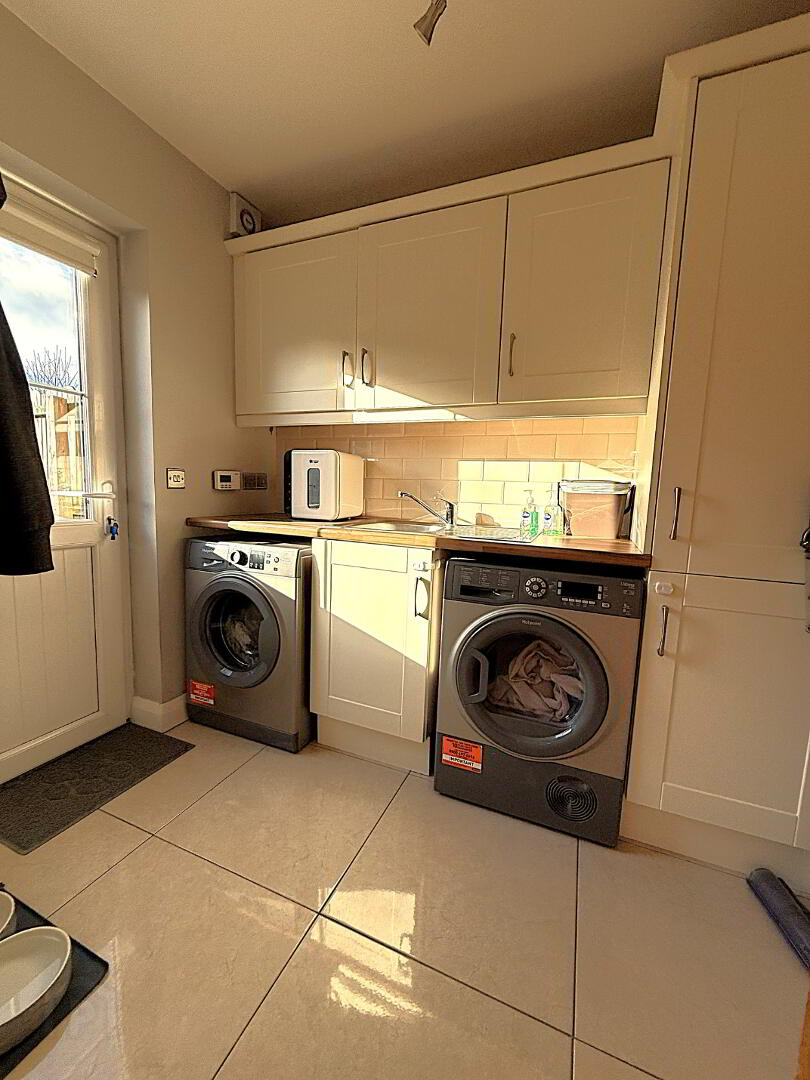 Utility room- Continuation of units stainless sink and drainer, plumbed for washing machine and tiled floors.
