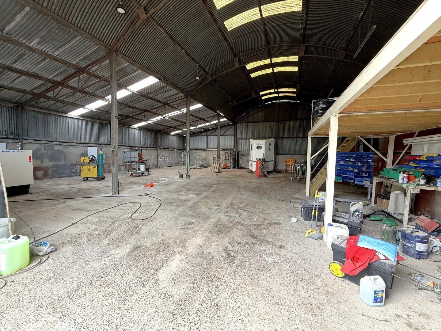 Storage/Workshop unit circa 4100sqft with power, lighting, concrete and hardcore yard area.