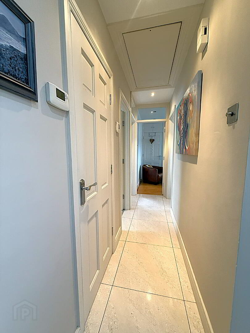 Entrance hall - Recessed lighting, ceramic tiled flooring and built in cupboard.