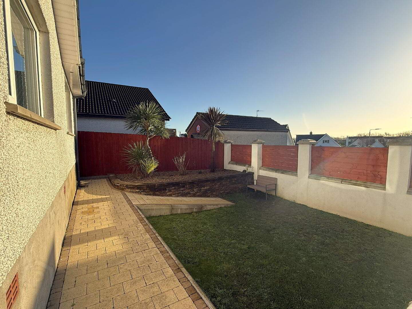 Front landscaped gardens with tarmac driveway to side. Rear enclosed proffessionally landscaped gardens featuring paved pathways and patio areas, grass lawn, raised private patio area with stainless steel glazed panelling, outside lighting and tap.
