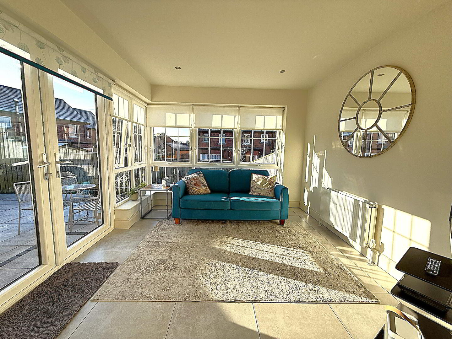 Sunroom 3.11m x 3.08m - Tiled floor, low energy recessed lighting, double pvc patio doors to rear garden.