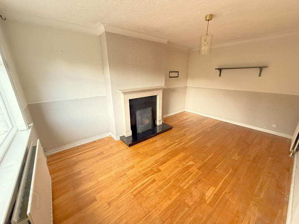Living room 4.72m x 3.2m feature fireplace, wood flooring and cornice ceiling.