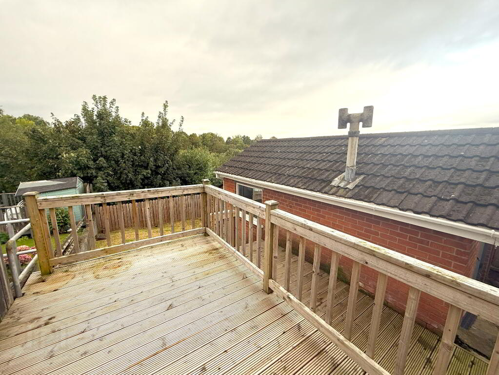 Detached garage 5.7m x 3.24m with oil boiler. Large enclosed rear garden with decked areas, outside light and tap. Front driveway and garden.