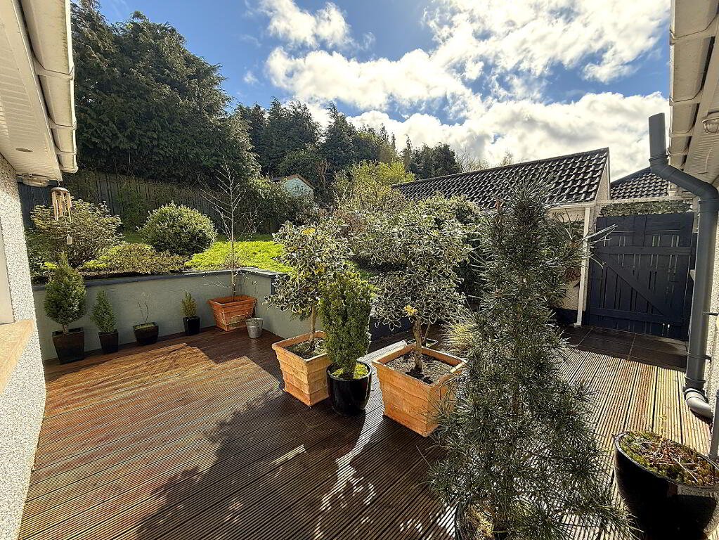 Rear enclosed landscaped gardens with paved patio and decked areas. Detached garage 5.28m x 3.08m with electric shutter door, power lighting and plumbing for washing machine and High and low level units with work top.